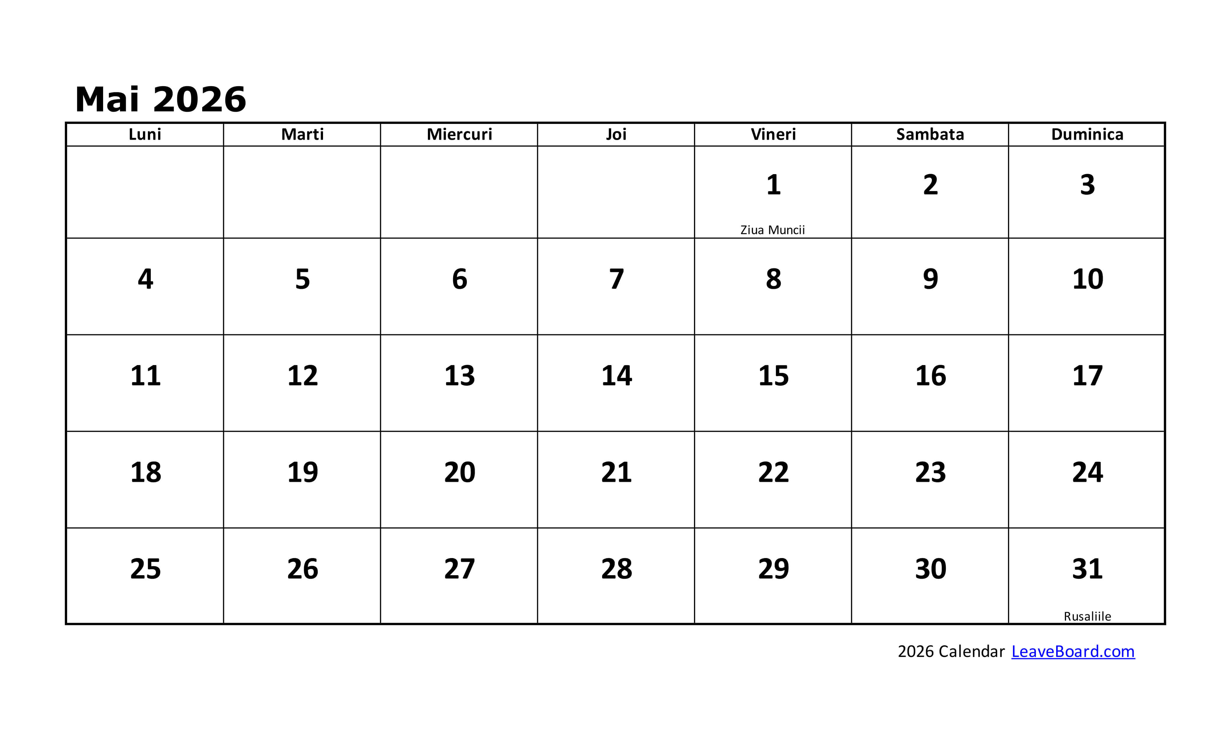 Acest calendar în limba română, poate fi printat, iar versiunea Excel este editabilă. În acest calendar puteți identifica cu ușurință zilele lucrătoare și zilele libere pentru fiecare lună.